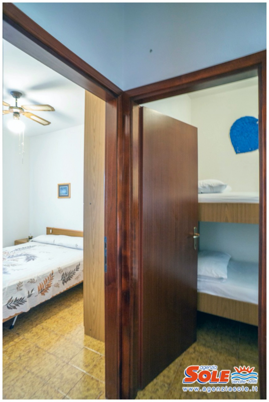 L’immobile è composto da una zona giorno con angolo cottura e accesso al terrazzo, una camera matrimoniale, una camera doppia con letto a castello e un bagno con doccia.
